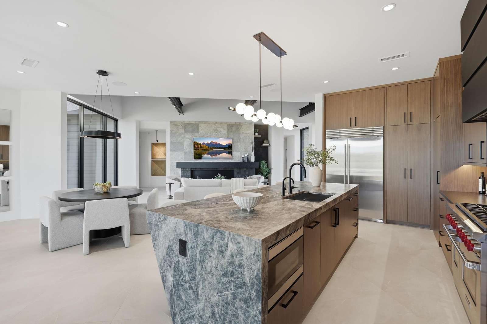 The open-concept great room is perfect for relaxing or entertaining, featuring vaulted ceilings, a stylish dry bar, and seamless flow to outdoor living spaces. The well-appointed kitchen and inviting living areas make the Juniper equally suited for quiet retreats or post-golf gatherings.